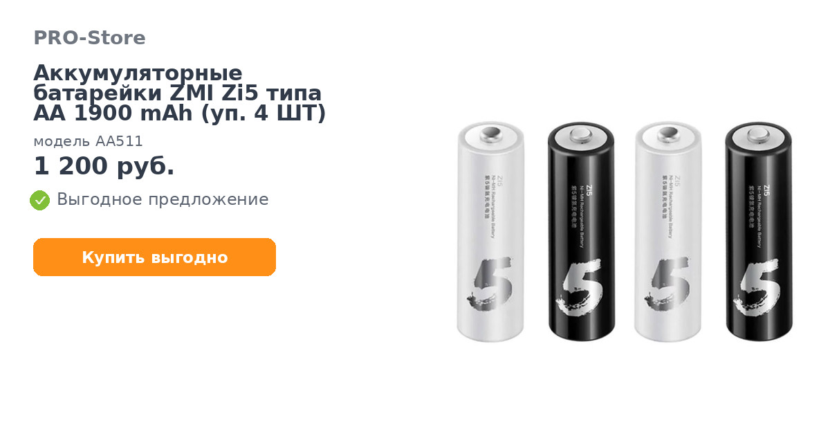 Аккумуляторные батарейки ZMI Zi5 типа AA 1900 mAh (уп. 4 ШТ), модель AA511