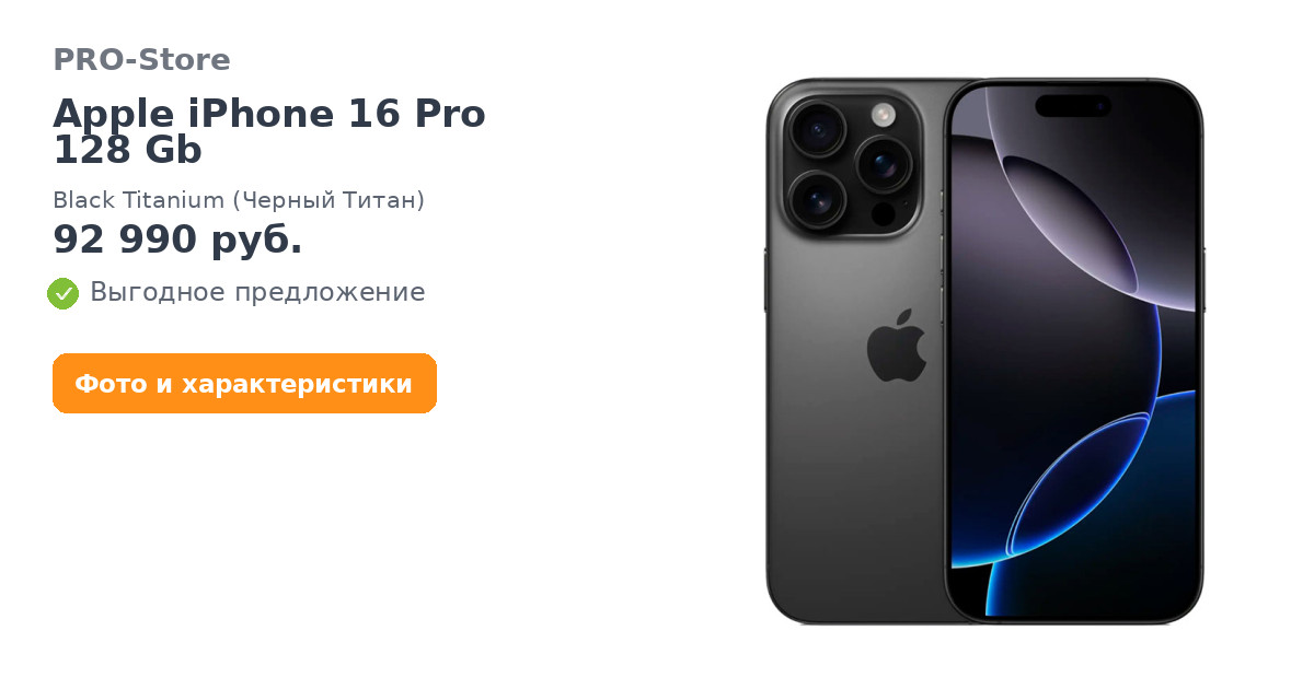 Apple iPhone 16 Pro 128 Gb Black Titanium (Черный Титан)