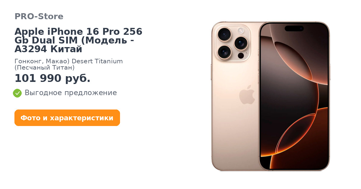 Apple iPhone 16 Pro 256 Gb Dual SIM (Модель - A3294 Китай, Гонконг, Макао) Desert Titanium (Песчаный Титан)