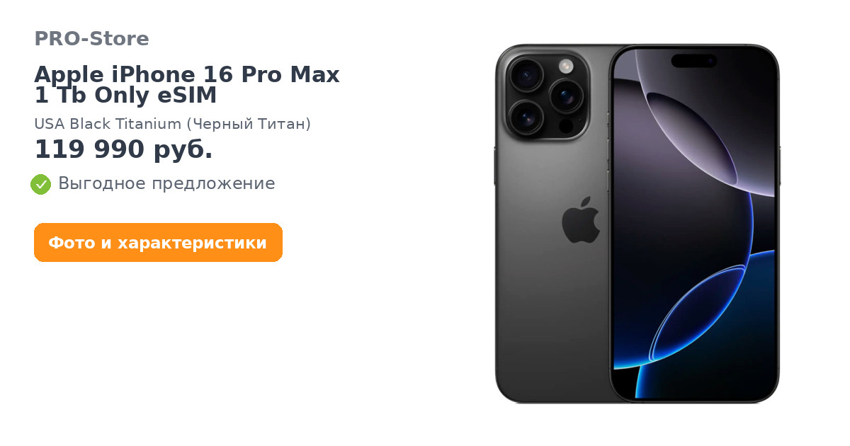Apple iPhone 16 Pro Max 1 Тb Only eSIM, USA Black Titanium (Черный Титан)