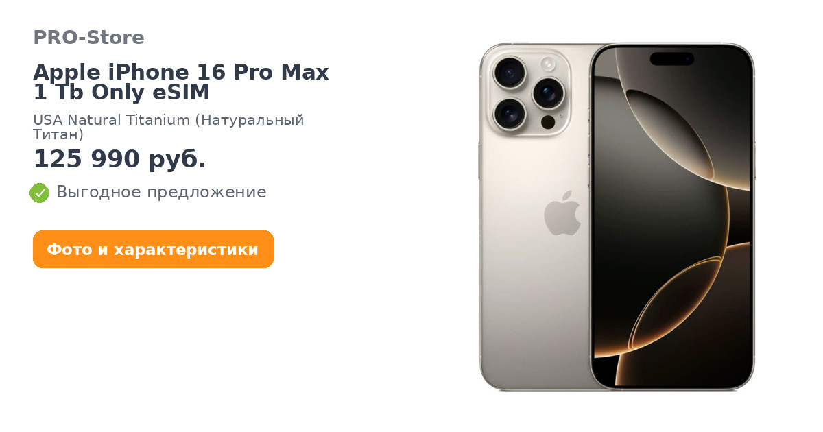 Apple iPhone 16 Pro Max 1 Тb Only eSIM, USA Natural Titanium (Натуральный Титан)