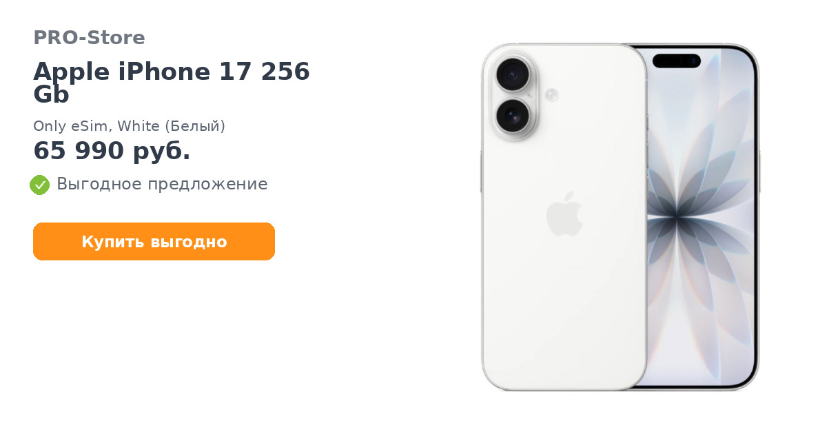 Apple iPhone 17 256 Gb, Only eSim, White (Белый)