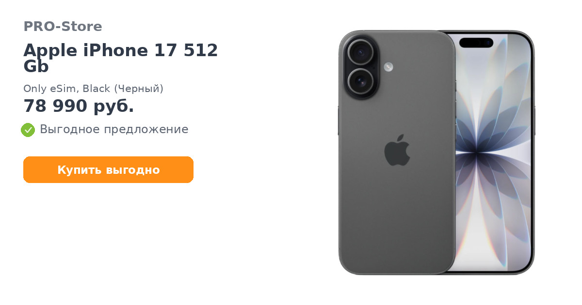 Apple iPhone 17 512 Gb, Only eSim, Black (Черный)