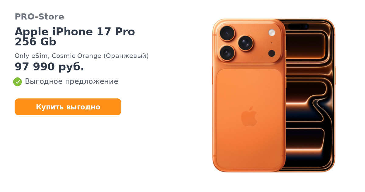 Apple iPhone 17 Pro 256 Gb, Only eSim, Cosmic Orange (Оранжевый)