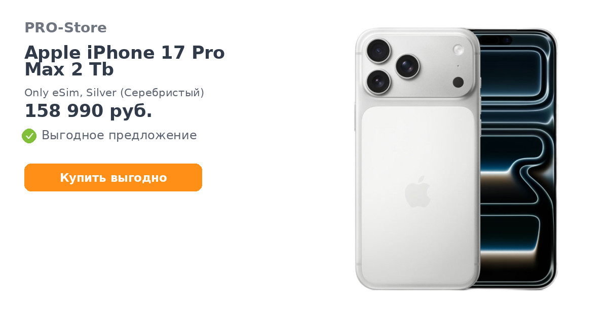 Apple iPhone 17 Pro Max 2 Tb, Only eSim, Silver (Серебристый)