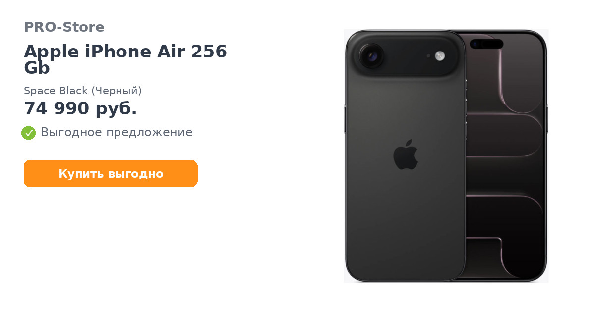 За быстродействие отвечает чип A19 Pro, обеспечивающий высокую производительность в играх и приложениях. В продуктовой линейке iPhone Air занимает место между базовым iPhone 17 и флагманом iPhone 17 Pro, предлагая тонкий корпус и премиальные функции без компромиссов.