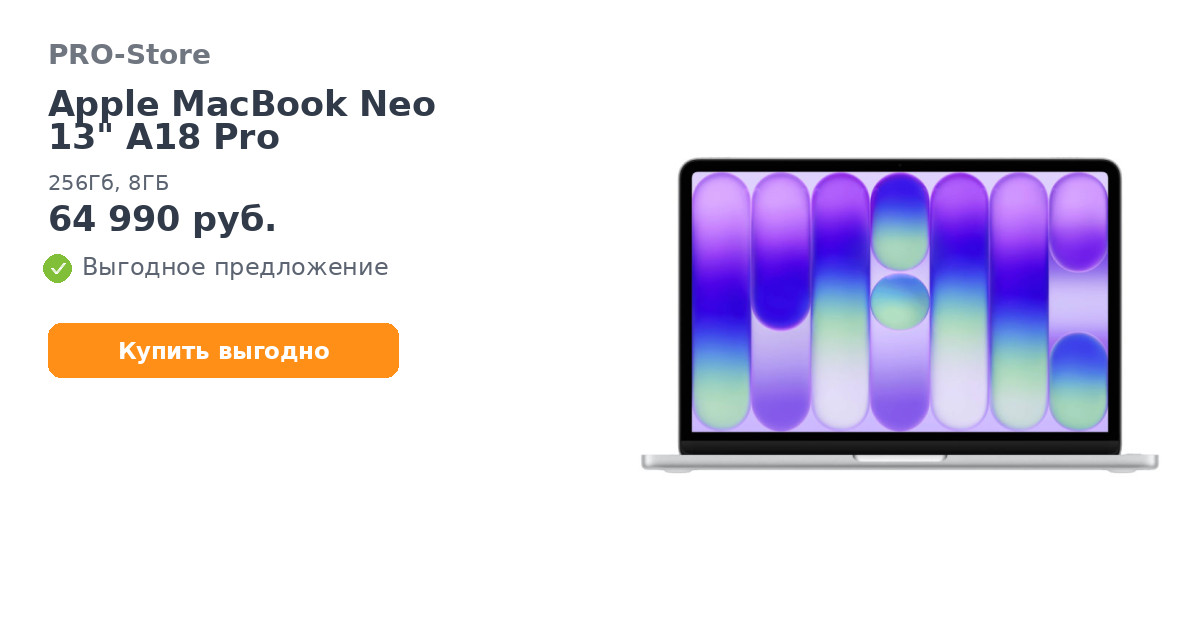 Apple MacBook Neo 13" A18 Pro, 256Гб, 8ГБ, 6C CPU, 5C GPU, MHFA4, Серебристый/Silver