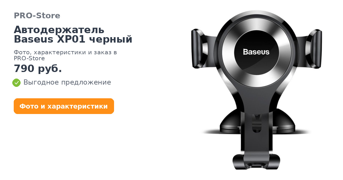 Оригинальный механизм обеспечивает надёжную фиксацию телефона за счёт собственного веса: он надавливает на нижнюю грань держателя и приводит в движение два боковых крепления, которые зажимают телефон по бокам. В нижней фиксирующей грани есть специальное функциональное отверстие, позволяющее заряжать гаджет. Благодаря универсальной конструкции крепления и возможности вращения на 360° смартфон можно установить и зафиксировать под любым углом.