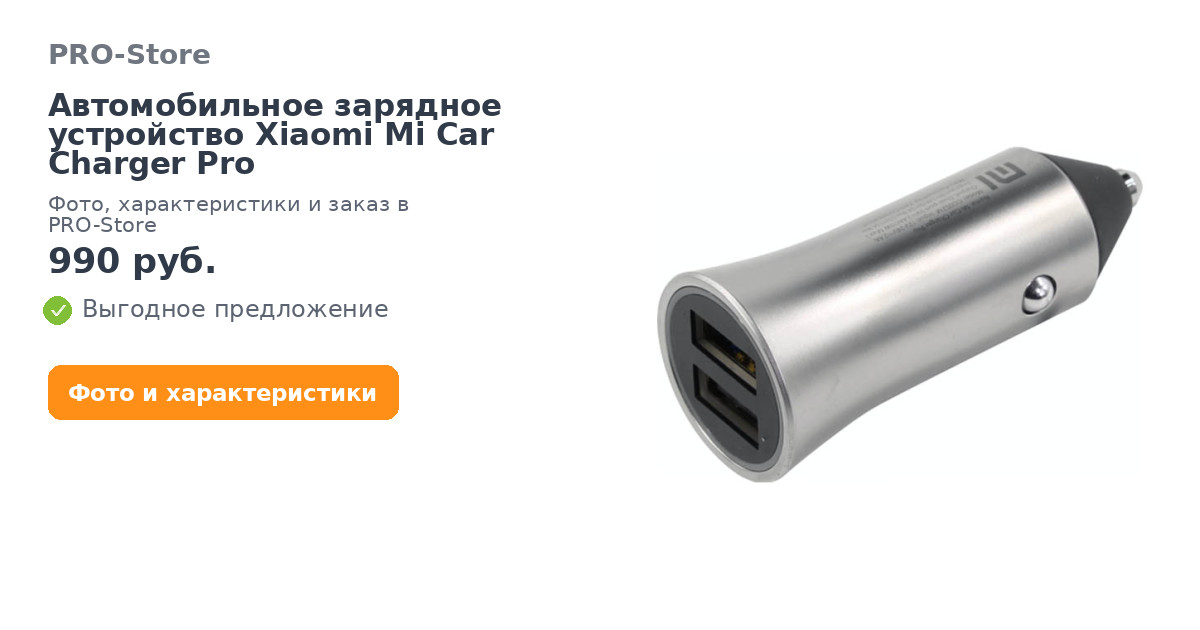 Автомобильное зарядное устройство Xiaomi Mi Car Charger Pro в наличии в интернет-магазине PRO-Store. Купите товар онлайн на сайте или можете заказать по телефону: 8 (800) 600-72-72. Быстрая доставка по Москве и России. Оплата возможна в рассрочку. В нашем каталоге только оригинальная продукция.