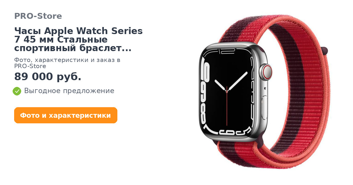 Нержавеющая сталь применяется в производстве часов элитного класса благодаря высокой прочности и низкого веса (51.5 г). Женсие и детские часы apple watch 7 оснащены сапфировым стеклом спереди и задней крышкой из керамики. Спортивная петля изготовлена из мягкого и дышащего двухслойного нейлона с застежкой на липучке для быстрой и легкой регулировки.