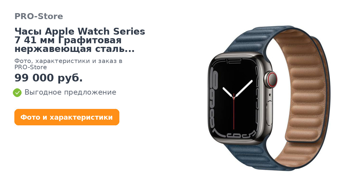 Часы Apple Watch Series 7 41 мм Графитовая нержавеющая сталь браслет из кожи «Балтийский синий»