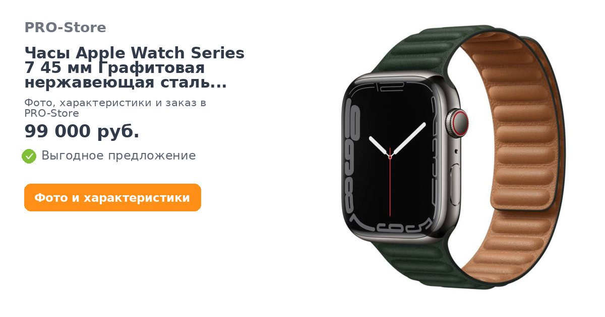Нержавеющая сталь применяется в производстве часов элитного класса благодаря высокой прочности и низкого веса (51.5 г). Мужские часы apple watch 7 оснащены сапфировым стеклом спереди и задней крышкой из керамики. Браслет Leather Link изготовлен из кожи Roux Granada ручной работы, без застежек и пряжек, и имеет встроенные магниты для надежной и регулируемой посадки.