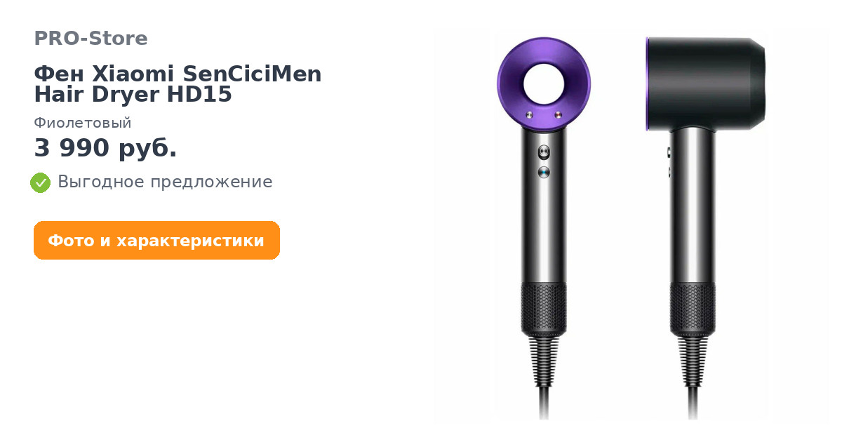 Фен для волос SenCiciMen Hair Dryer HD15 — бесшумный с мощным потоком воздуха быстро высушит волосы и поможет сделать любую укладку. 4 температурных и 3 скоростных режима плюс функция ионизации для гладких и послушных волос.Оригинальная конструкция