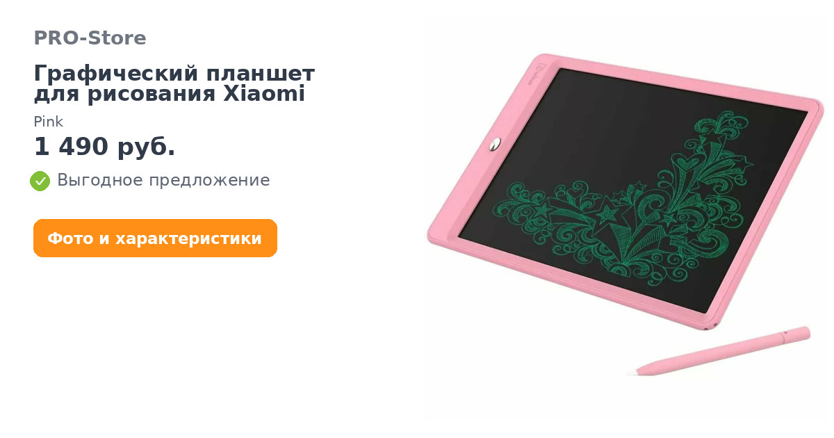 Графический планшет для рисования Xiaomi Pink