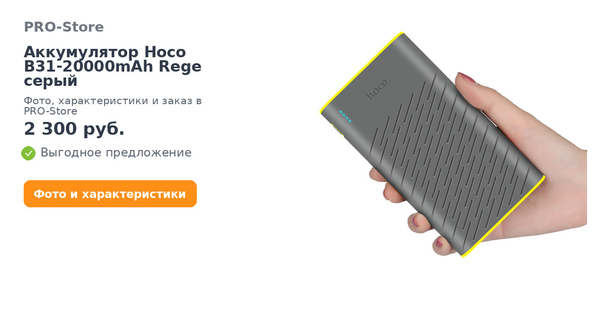 Аккумулятор Hoco B31-20000mAh Rege серый в наличии в интернет-магазине PRO-Store. Купите товар онлайн на сайте или можете заказать по телефону: 8 (800) 600-72-72. Быстрая доставка по Москве и России. Оплата возможна в рассрочку. В нашем каталоге только оригинальная продукция.