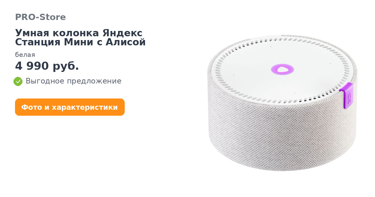Яндекс Станция Мини – это компактная умная колонка с голосовым помощником Алисой. С ней в любом уголке квартиры будет так, как захотите – празднично, уютно, шумно, спокойно. Скажите Алисе, что делать, или даже покажите: громкость можно регулировать жестами. Алиса поможет начать день с хорошей песни и свежих новостей, будет советовать вам музыку и рассказывать прогноз погоды, искать интересные рецепты и зажигать гирлянды. Она знает множество сказок и всегда готова поболтать или поиграть.