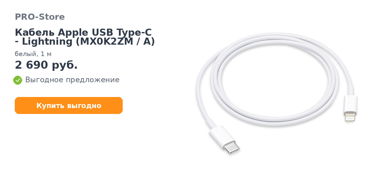 Кроме того, этот кабель можно использовать для зарядки устройств iOS с помощью адаптера питания Apple USB‑C мощностью 29 Вт, 30 Вт, 61 Вт или 87 Вт, а также для быстрой подзарядки iPhone 8, iPhone 8 Plus, iPhone X, iPhone XS, iPhone XS Max, iPhone XR и некоторых моделей iPad Pro.