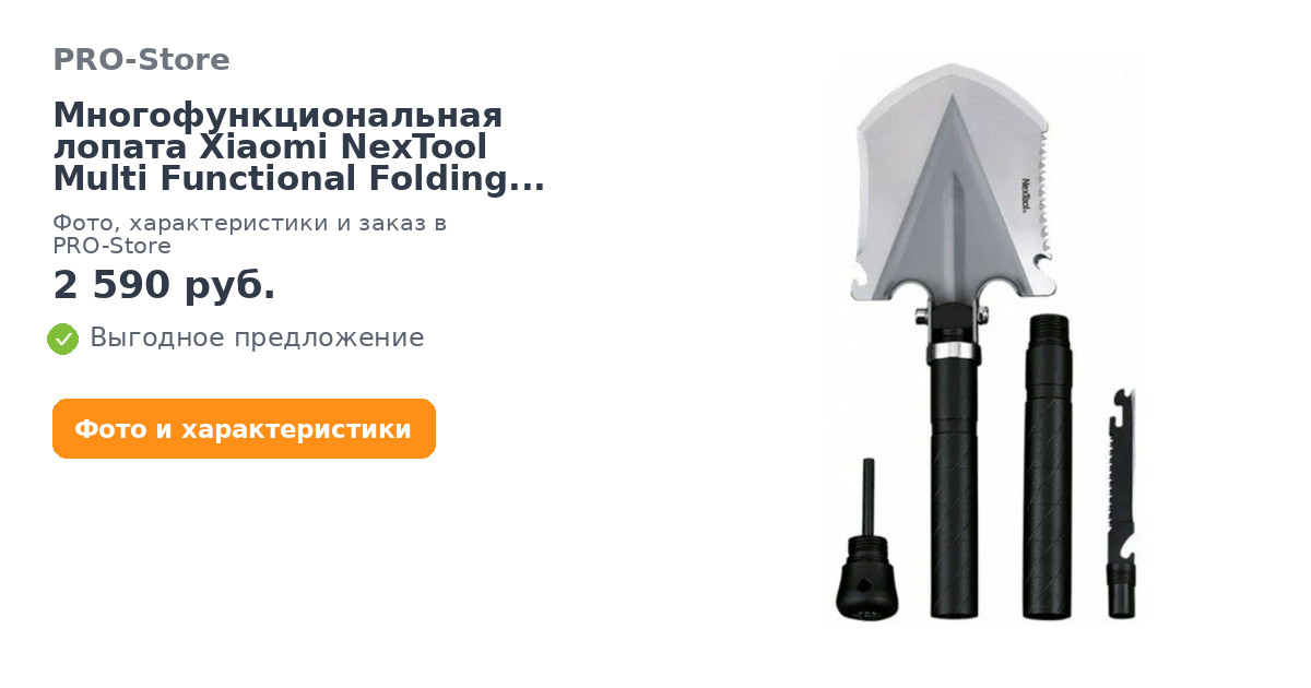 14 инструментов в одном устройствеXiaomi NexTool Multi-function Shovel объединяет около 14 инструментов, таких как лопата, мотыга, крюк, пила, огниво, компас и т.д. Такая многофункциональная лопата станет надежным соратником в условиях дикой природы и позволит проводить активный отдых без лишнего багажа за плечами.