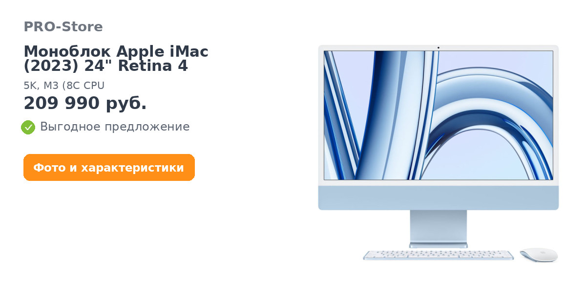 Моноблок Apple iMac (2023) 24" Retina 4,5K, M3 (8C CPU, 10C GPU), 8 ГБ, 256 ГБ SSD, MQRQ3, Синий