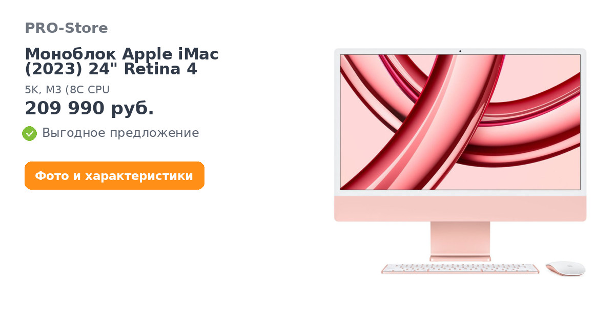 Еще больше сочностиЛучший в мире компьютер "все в одном", теперь оснащенный чипом M3 с наддувом. Благодаря потрясающему 24‑дюймовому дисплею1, который обеспечивает вам все необходимое пространство, и культовому дизайну, оживляющему любое пространство, iMac идеально подходит для работы и развлечений.