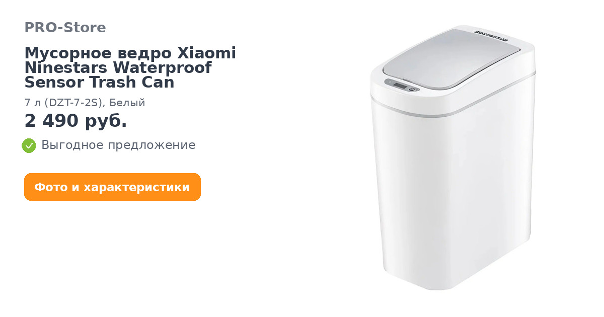 Мусорное ведро Xiaomi Ninestars Waterproof Sensor Trash Can, 7 л (DZT-7-2S), Белый