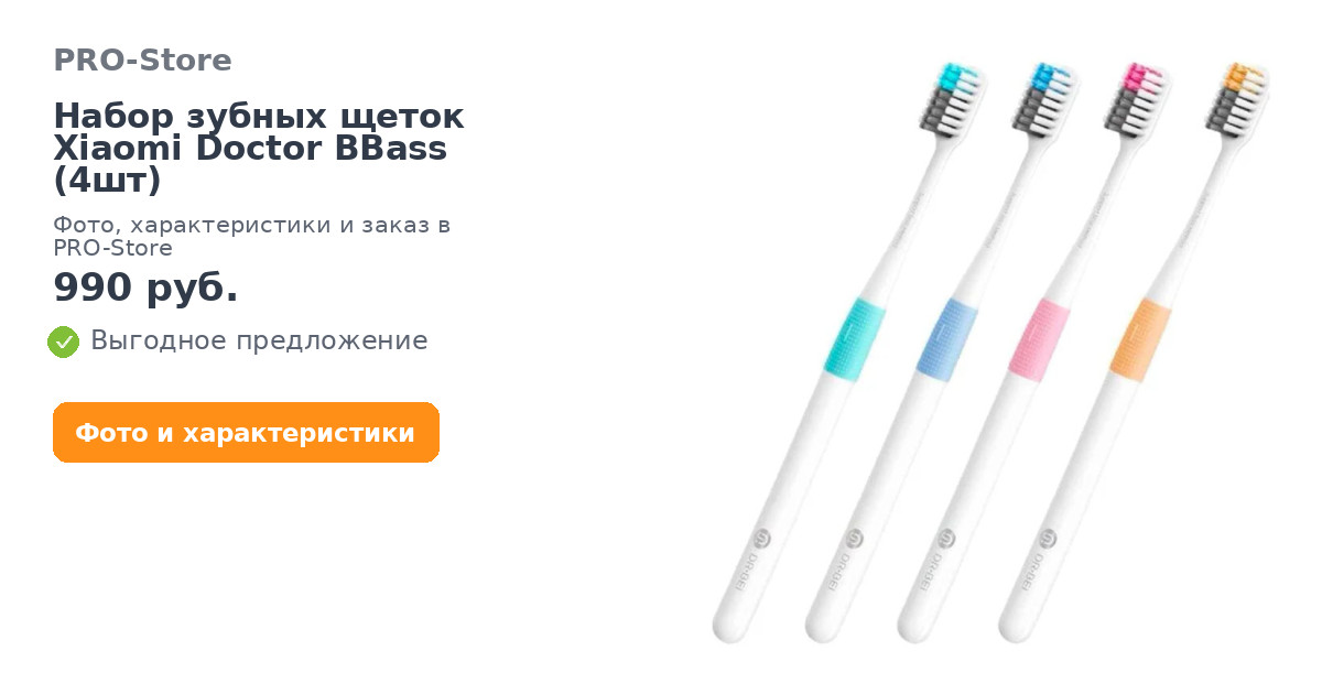 Набор зубных щеток Xiaomi Doctor BBass (4шт) в наличии в интернет-магазине PRO-Store. Купите товар онлайн на сайте или можете заказать по телефону: 8 (800) 600-72-72. Быстрая доставка по Москве и России. Оплата возможна в рассрочку. В нашем каталоге только оригинальная продукция.