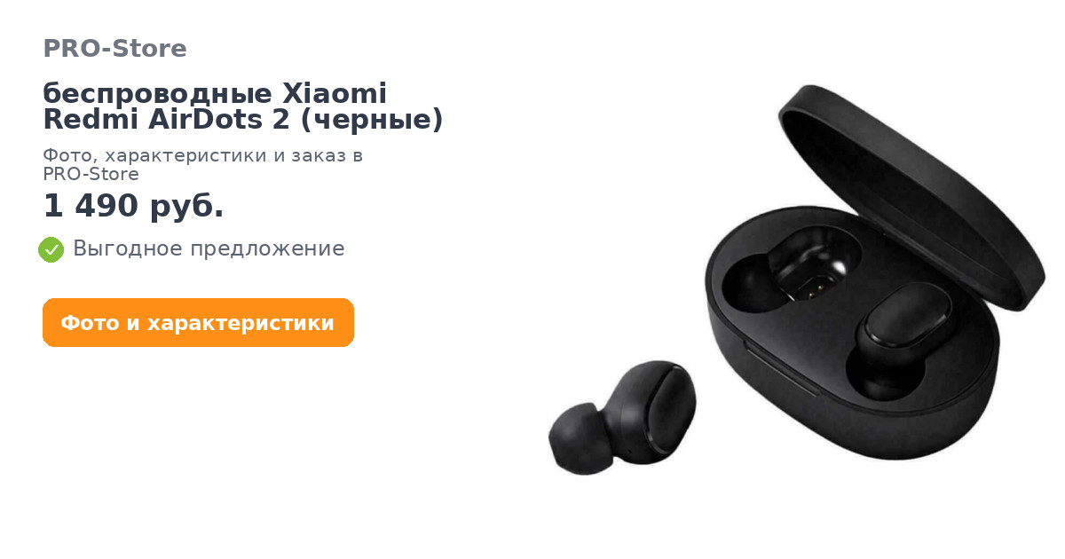 Наушники беспроводные Xiaomi Redmi AirDots 2 (черные) в наличии в интернет-магазине PRO-Store. Купите товар онлайн на сайте или можете заказать по телефону: 8 (800) 600-72-72. Быстрая доставка по Москве и России. Оплата возможна в рассрочку. В нашем каталоге только оригинальная продукция.