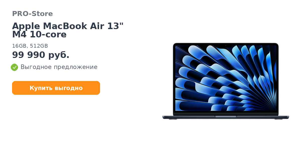 Тонкий, лёгкий и ещё мощнее, чем преждеОдин раз попробовав поработать с MacBook Air, сложно остаться к нему равнодушным – это очень удобный инструмент, который действительно подходит для любых задач, при этом, даже работа превращается в удовольствие, ведь в ноутбуках данной серии сочетается всё, за что пользователи любят MacBook, дополняется поразительной мобильностью и автономностью, а вишенкой на торте становится мощь процессоров Apple. Трассировка лучей и 10 ядер в ноутбуке без вентиляторов, толщиной со смартфон и способном заряжаться даже от зарядки смартфона.