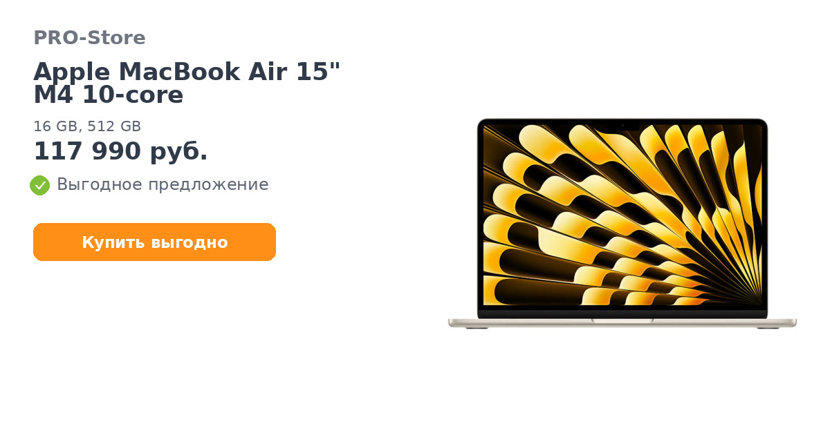 Apple MacBook Air 15" M4 10-core, 16 GB, 512 GB, 2025 Starlight/Сияющая звезда (MW1K3LL/A)