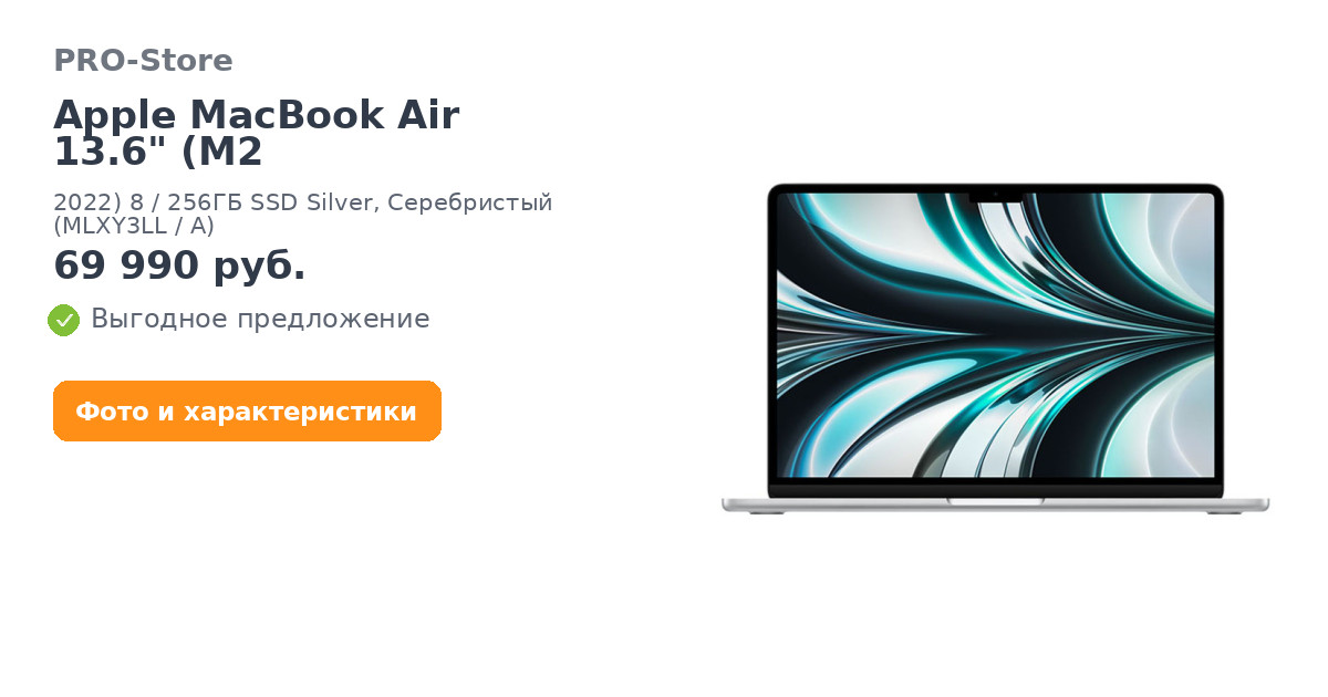 Apple MacBook Air 13.6" (M2, 2022) 8/256ГБ SSD Silver, Серебристый (MLXY3LL/A)