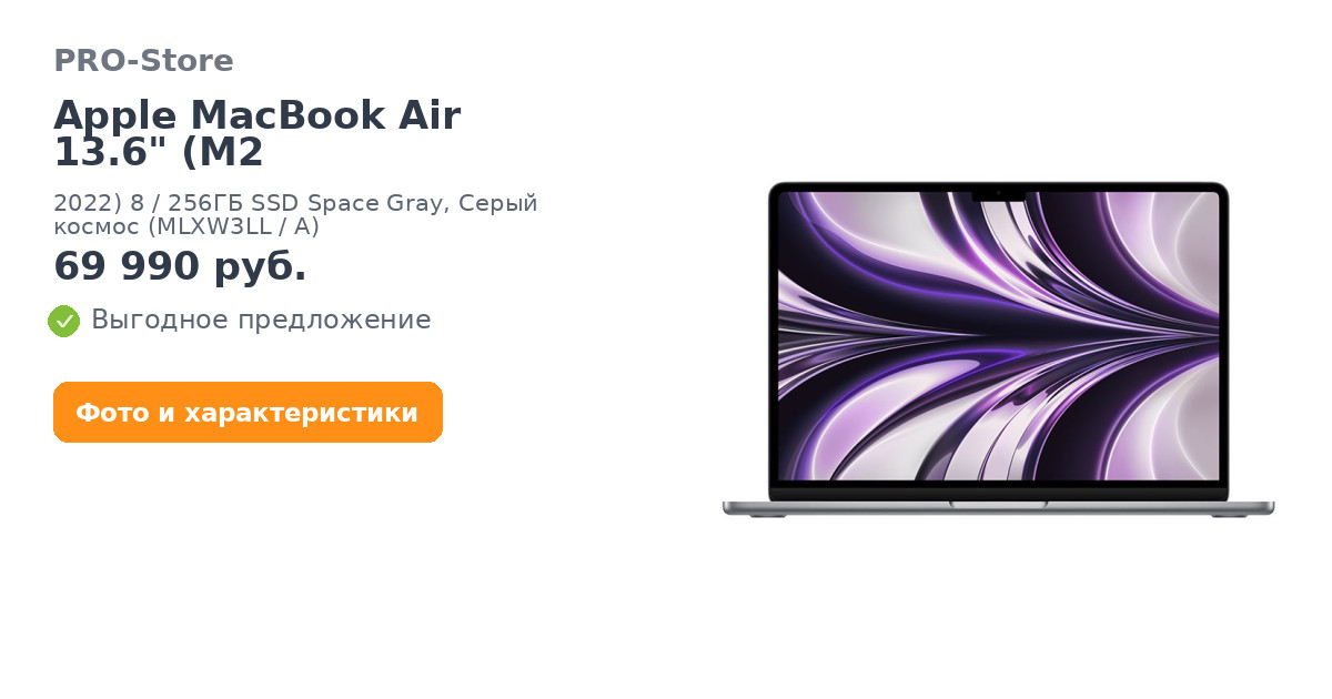 Apple MacBook Air 13.6" (M2, 2022) 8/256ГБ SSD Space Gray, Серый космос (MLXW3LL/A)