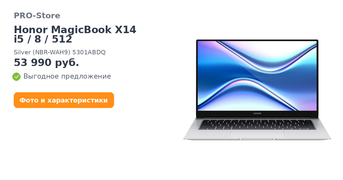 Ноутбук Honor MagicBook X14 i5/8/512 Silver (NBR-WAH9) 5301ABDQ