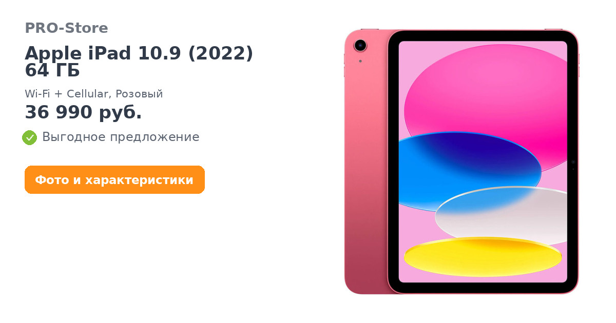 Совершенно новый iPad красочно переосмыслен, чтобы сделать его более производительным, интуитивно понятным и еще более увлекательным. Благодаря новому полноэкранному дизайну, 10,9‑дюймовому дисплею Liquid Retina и четырем великолепным цветам iPad предоставляет мощный способ делать что-то, творить и оставаться на связи.1 Добавьте необходимые аксессуары, разработанные специально для iPad, и наслаждайтесь безграничной универсальностью всего, что вы любите делать.