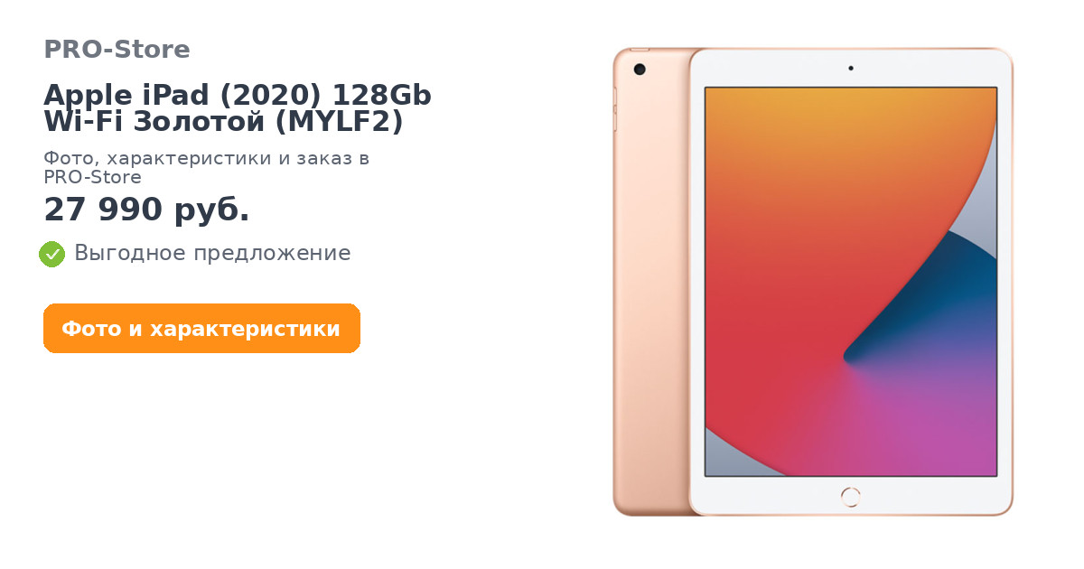 Планшет Apple iPad (2020) 128Gb Wi-Fi Золотой (MYLF2)