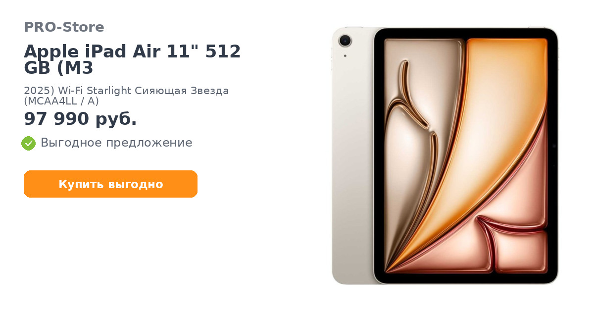 Планшет Apple iPad Air 11" 512 GB (M3, 2025) Wi-Fi Starlight Сияющая Звезда (MCAA4LL/A)