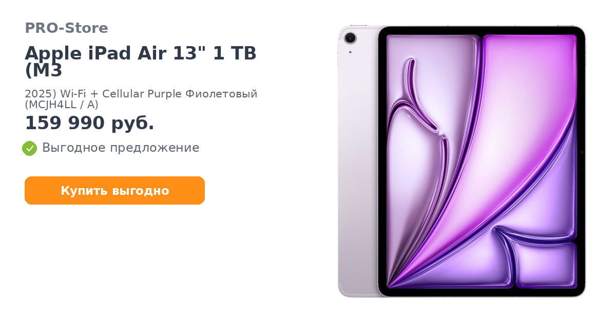 Планшет Apple iPad Air 13" 1 TB (M3, 2025) Wi-Fi + Cellular Purple Фиолетовый (MCJH4LL/A)