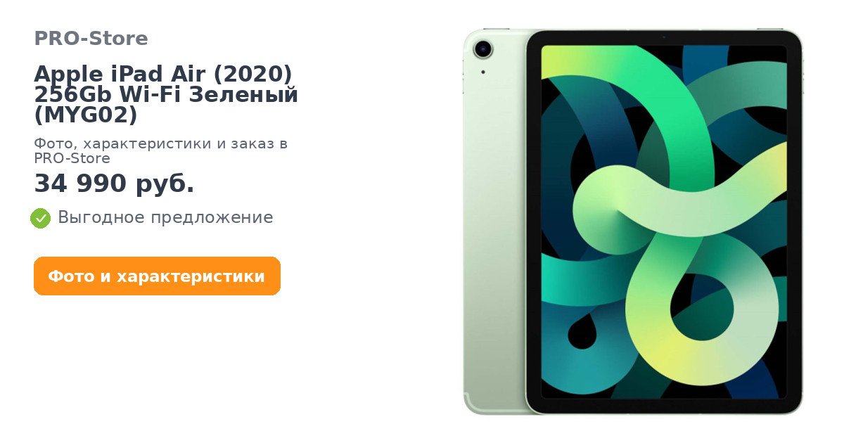- Комплектация: iPad Air 10,9 дюйма, Зарядный кабель USB‑C, Адаптер питания USB‑C мощностью 20 Вт