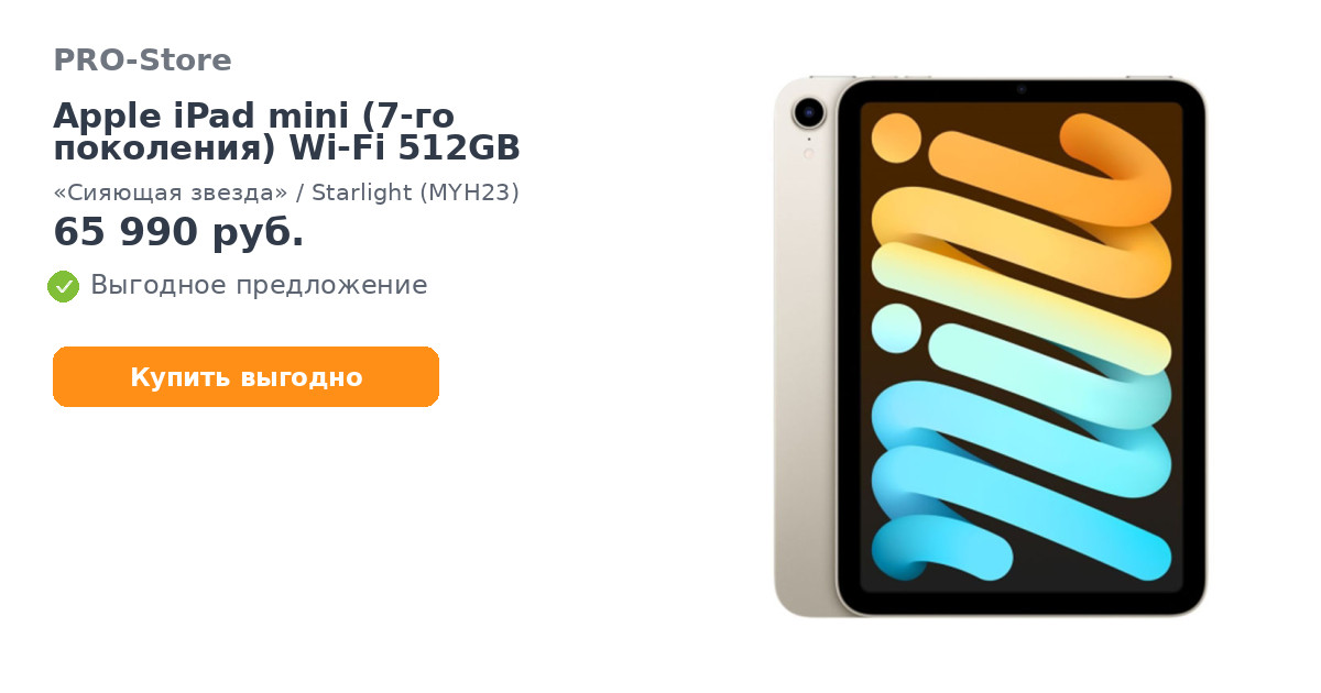 Планшет Apple iPad mini (7-го поколения) Wi-Fi 512GB, «Сияющая звезда»/Starlight (MYH23)