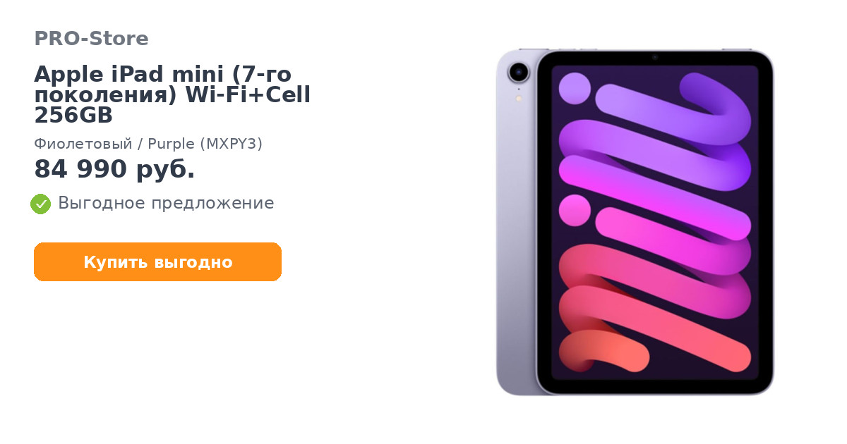 Планшет Apple iPad mini (7-го поколения) Wi-Fi+Cell 256GB, Фиолетовый/Purple (MXPY3)