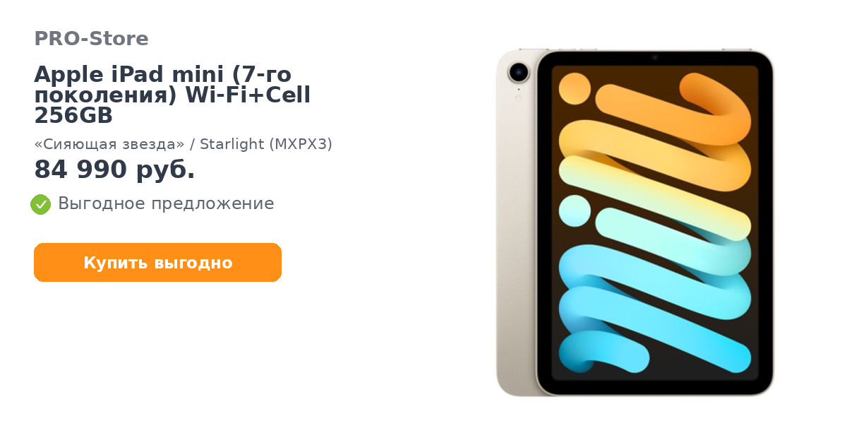 Планшет Apple iPad mini (7-го поколения) Wi-Fi+Cell 256GB, «Сияющая звезда»/Starlight (MXPX3)