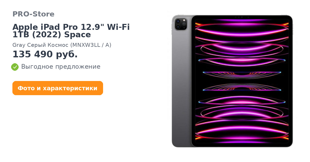 Планшетный компьютер Apple iPad Pro 2022 оснащен производительным чипом М2, что положительно сказывается не только на быстродействии системы и возможности использовать требовательные приложения, но и позволяет запускать игры с консольным качеством графики. Устройство работает с форматами ProRes и ProRes RAW, поэтому с помощью гаджета можно заниматься даже видеомонтажом.Большой объем памяти