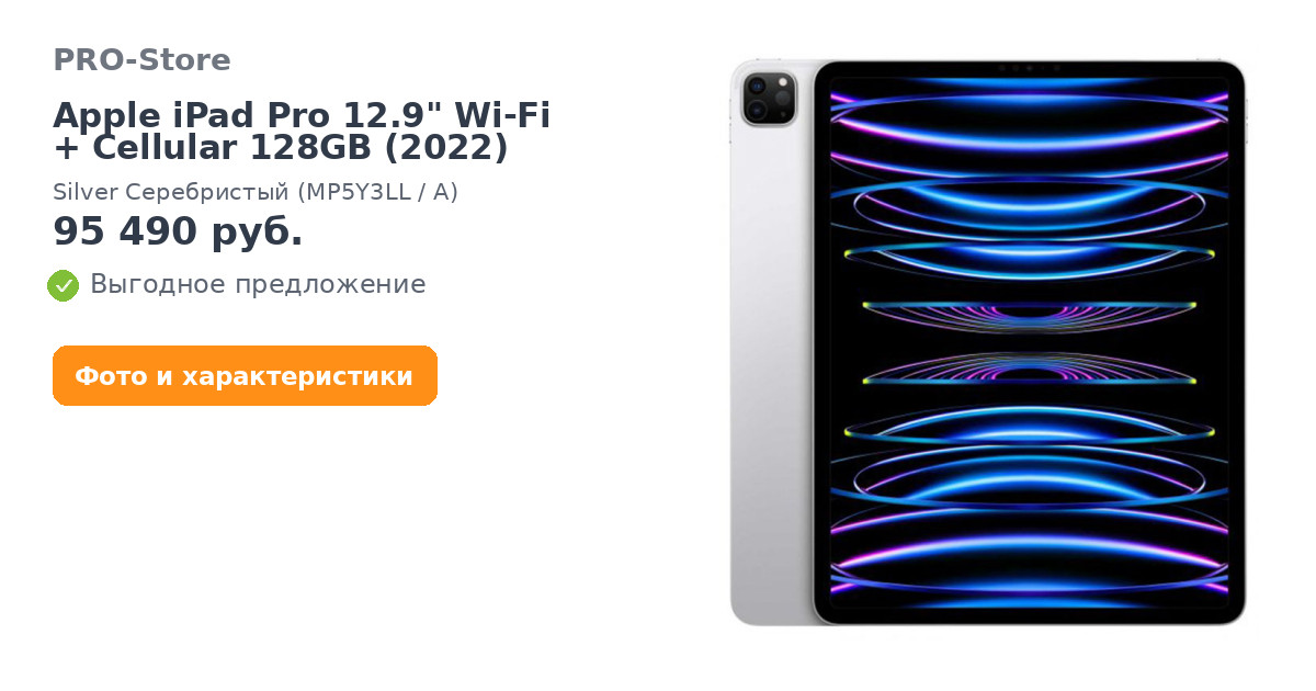 Планшет Apple iPad Pro 12.9" Wi-Fi + Cellular 128GB (2022) Silver Серебристый (MP5Y3LL/A)