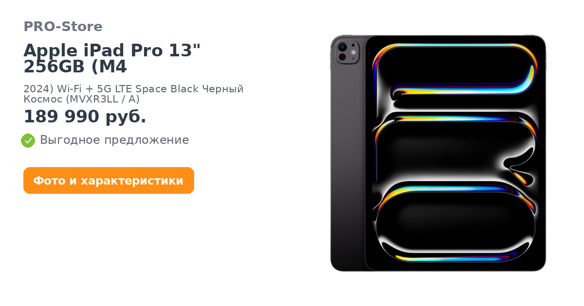Планшет Apple iPad Pro 13" 256GB (M4, 2024) Wi-Fi + 5G LTE Space Black Черный Космос (MVXR3LL/A)