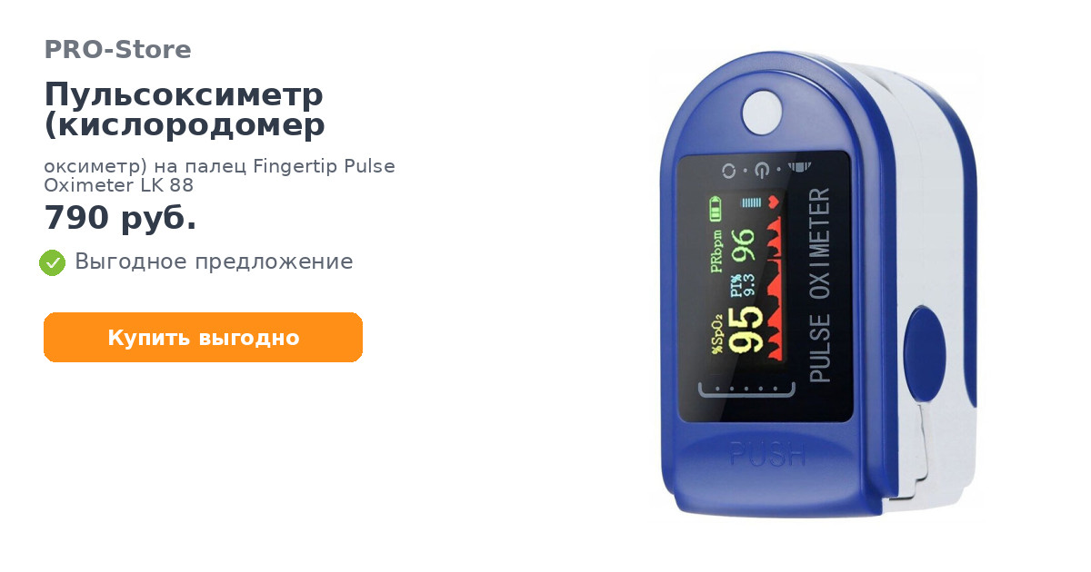 Очень легкий, всего 27 грамм, и маленький пульсоксиметр может быть всегда под рукой - в сумке или кармане.