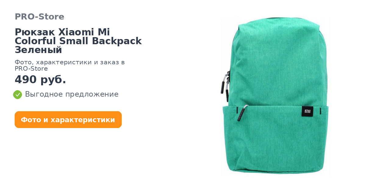Рюкзак Xiaomi Mi Colorful Small Backpack Зеленый в наличии в интернет-магазине PRO-Store. Купите товар онлайн на сайте или можете заказать по телефону: 8 (800) 600-72-72. Быстрая доставка по Москве и России. Оплата возможна в рассрочку. В нашем каталоге только оригинальная продукция.