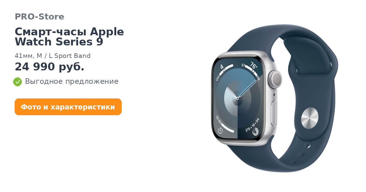 Смарт-часы Apple Watch Series 9, 41мм, M/L Sport Band, Грозовой синий (MR913)