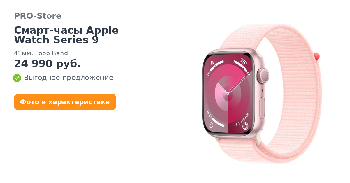 Смарт-часы Apple Watch Series 9, 41мм, Loop Band, Нежно-розовый (MR953)