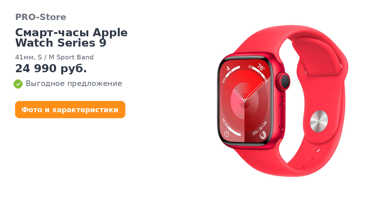 Смарт-часы Apple Watch Series 9, 41мм, S/M Sport Band, (PRODUCT)RED (MRXG3)