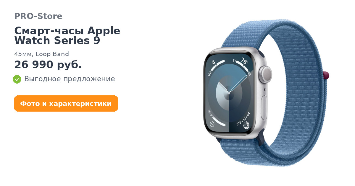 Смарт-часы Apple Watch Series 9, 45мм, Loop Band, Ледяной синий (MR9F3)