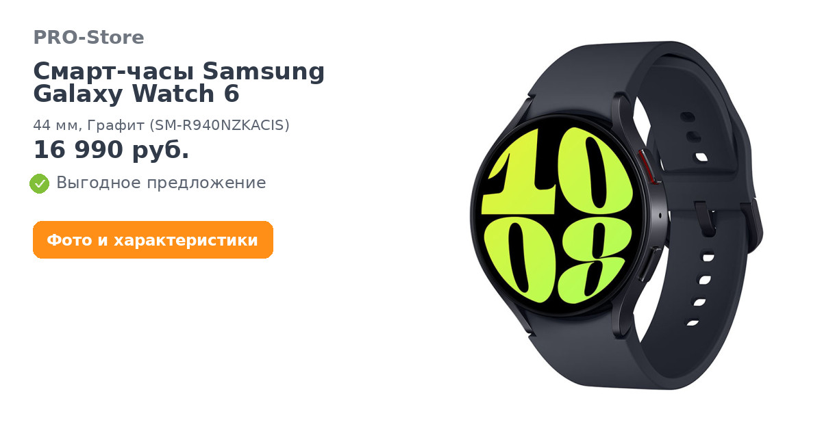 Смарт-часы Samsung Galaxy Watch 6, 44 мм, Графит (SM-R940NZKACIS)